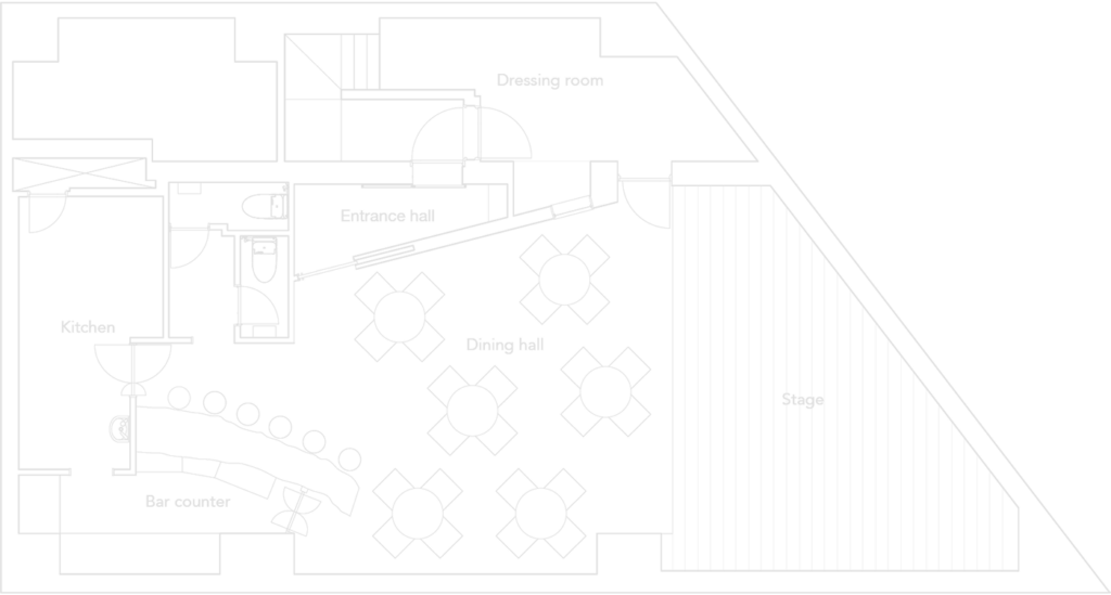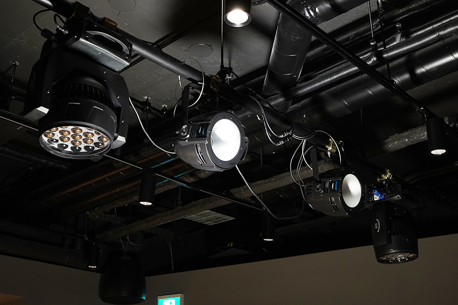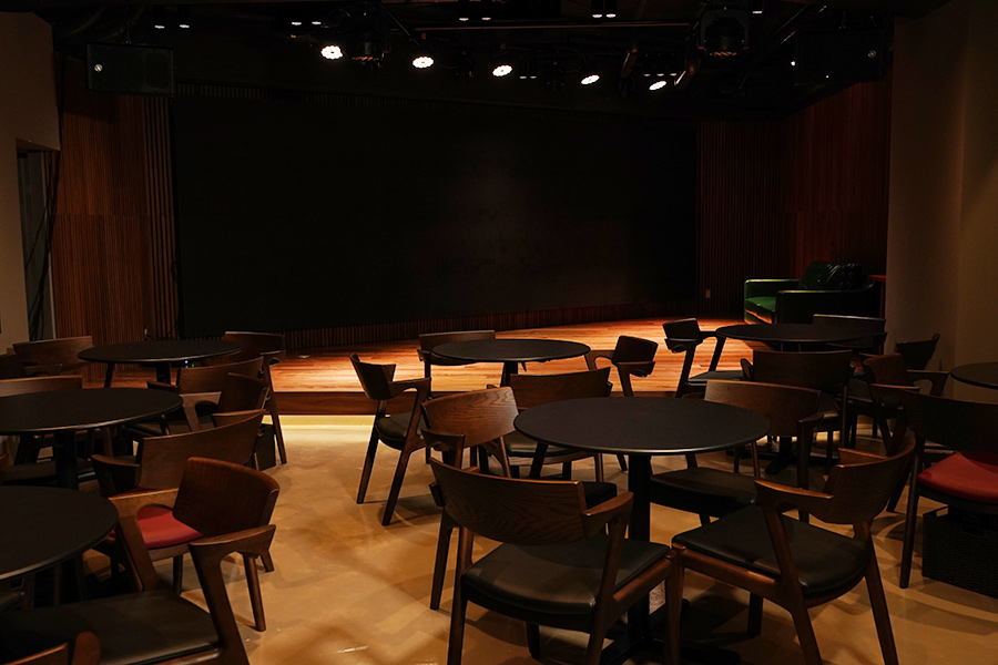 ステージには 5m × 2m の大型LEDモニターをはじめ、舞台照明・ライブ音響・常設マイクを完備。吸音材や防音仕様により、演奏からレコーディングまで高品質なサウンド演出が可能です。